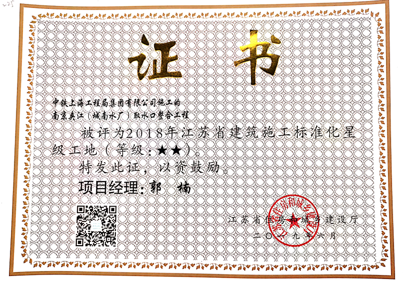 近日,南京夾江(城南水廠)取水口整合工程榮獲“江蘇省建筑施工標準化星級工地”榮譽稱號,這是該項目繼榮獲“南京市建筑施工市級標準化文明示范工地”后又一榮譽。...