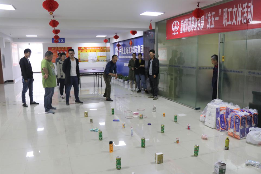 428日,潁上項目部工會組織項目全體職工開展五一文體活動。現場舉行了套圈游戲活動,在一陣陣套中獎品時的歡呼聲中,比賽順利進行,現場氣氛十分熱鬧歡愉。