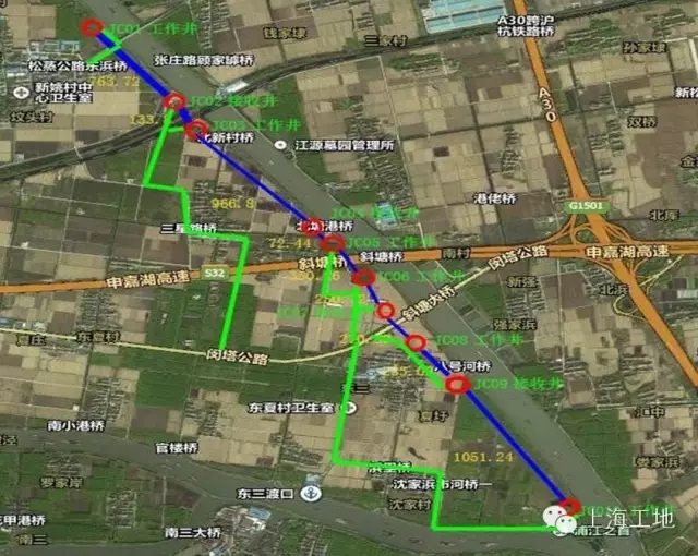 現場負責人告訴工地君黃浦江上游水源地連通管工程C5標自松江泵站至金山分水點段的JC-01井到JC-10井,包括10座頂管井及9個頂進區段,標段線路長度4237.26m,總造價2.05億元。